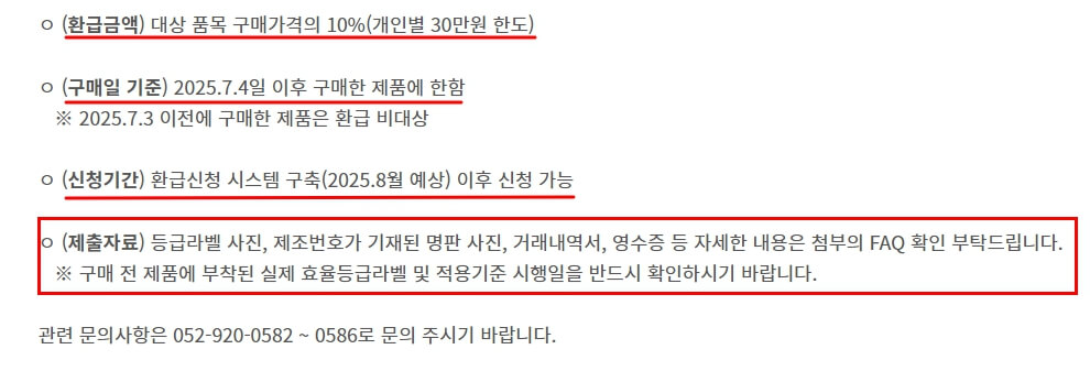 | 2025년 7월 4일부터 사업 종료일까지 구매한 제품이 대상이며, 재원 소진 시 조기 마감됩니다. |