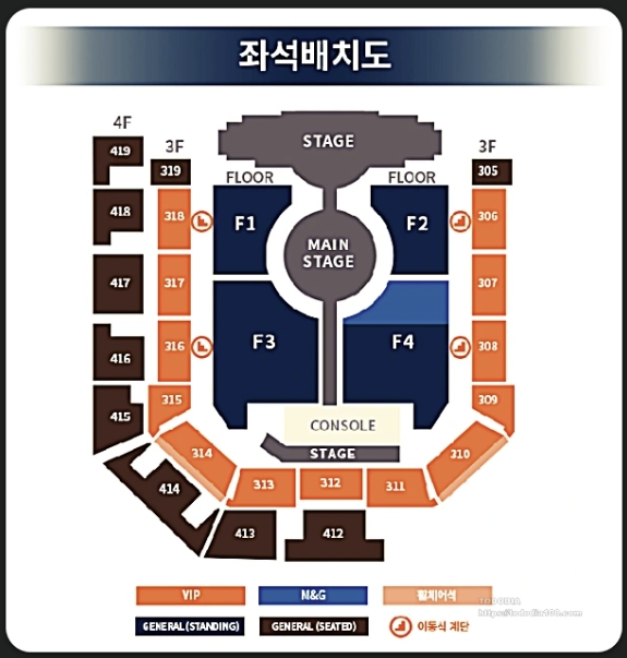 위치: 상층에 위치한 좌석으로, 경기장 전체를 한눈에 볼 수 있는 특징이 있습니다. 무대의 전체적인 분위기를 즐기기 좋습니다.